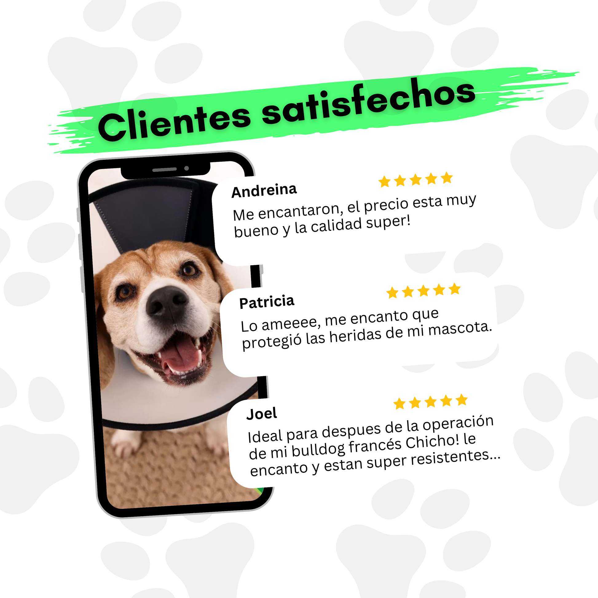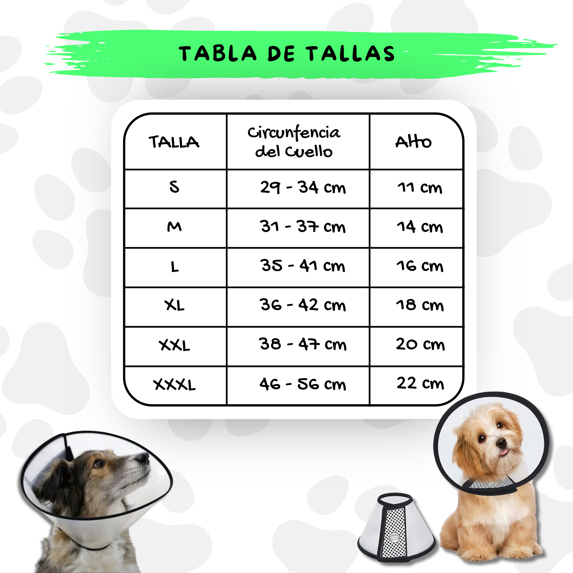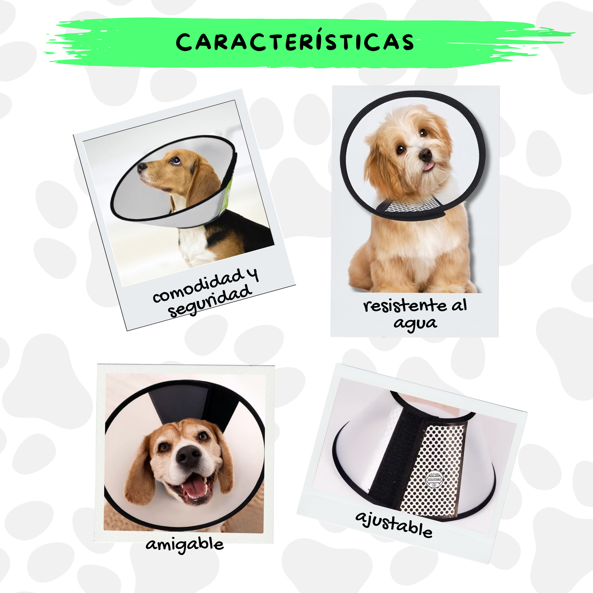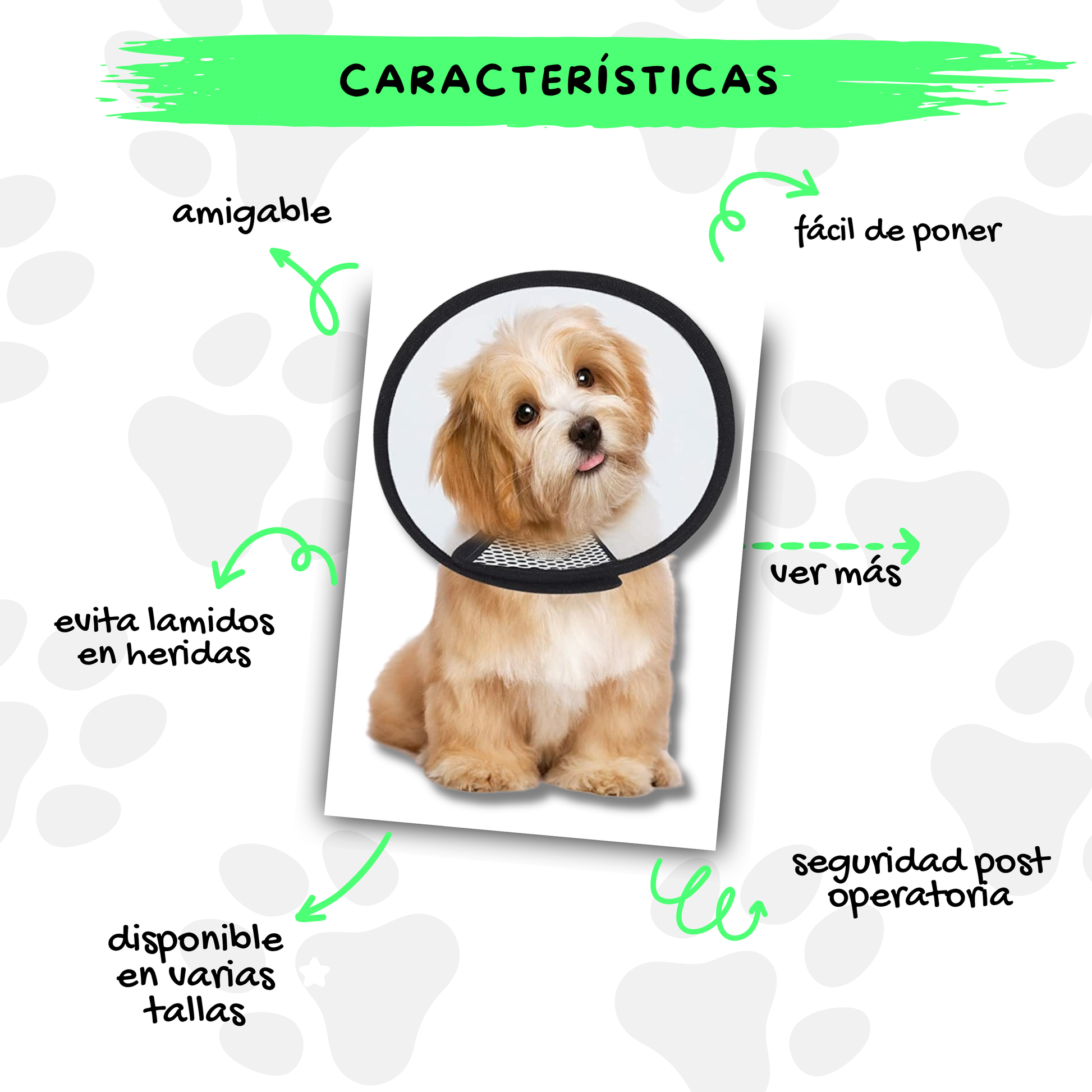 Fabricado en materiales ligeros como plástico o tela reforzada, se adapta cómodamente al cuello y está disponible en distintas tallas para ajustarse a cada mascota.