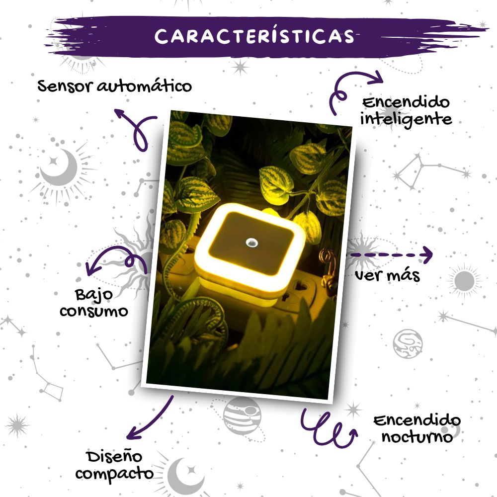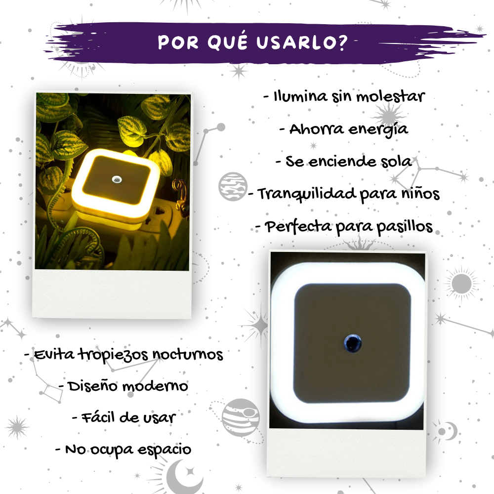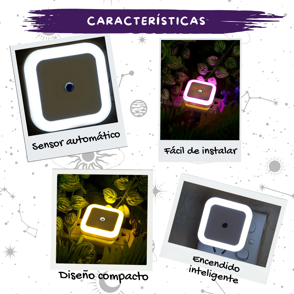 Su sensor inteligente detecta la oscuridad y se enciende automáticamente, brindando una luz suave y reconfortante que no molesta al dormir. Se adapta fácilmente a tus tomas de corriente sin ocupar espacio.