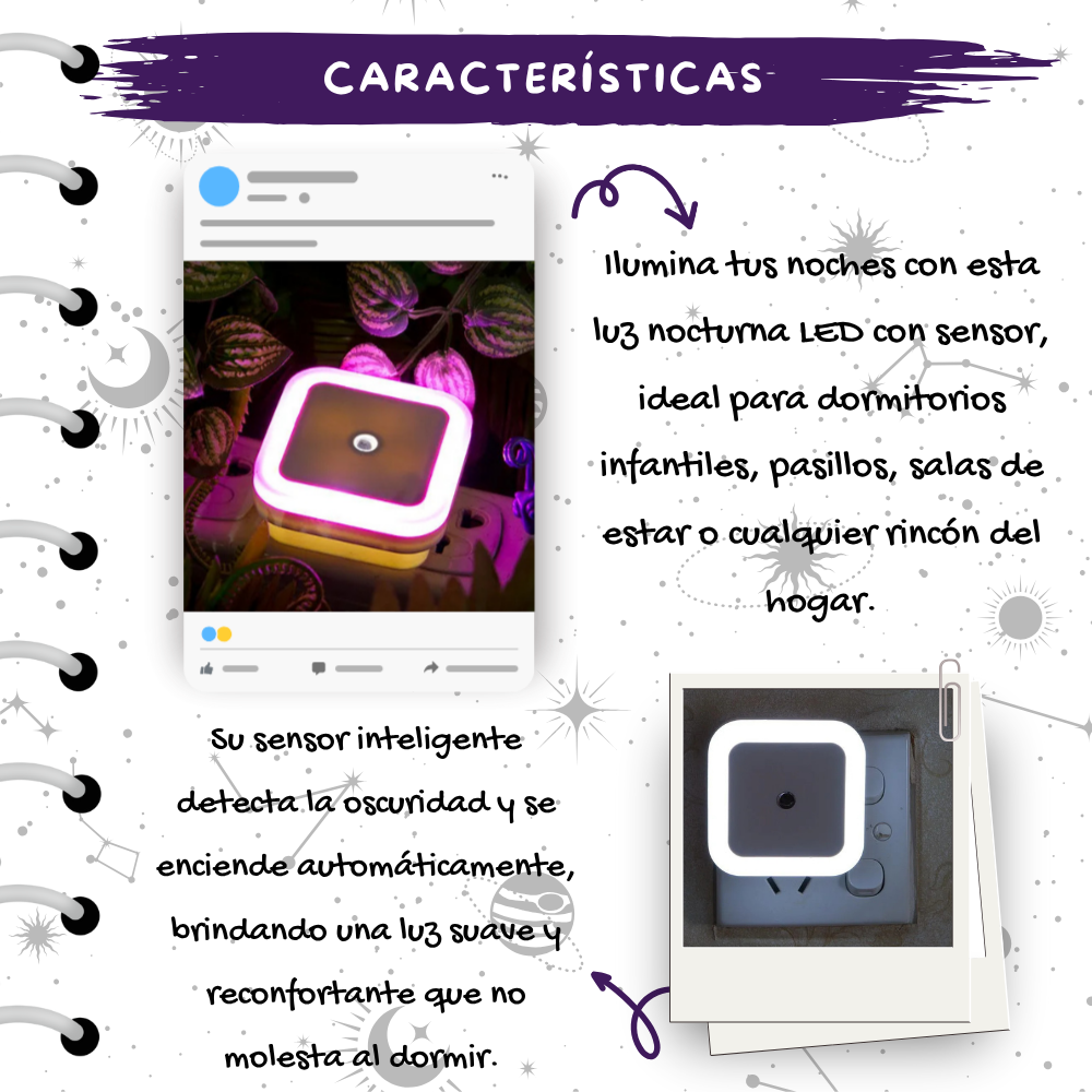 Ilumina tus noches con esta luz nocturna LED con sensor, ideal para dormitorios infantiles, pasillos, salas de estar o cualquier rincón del hogar.