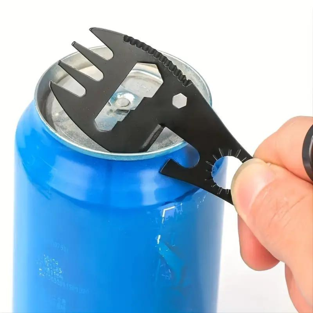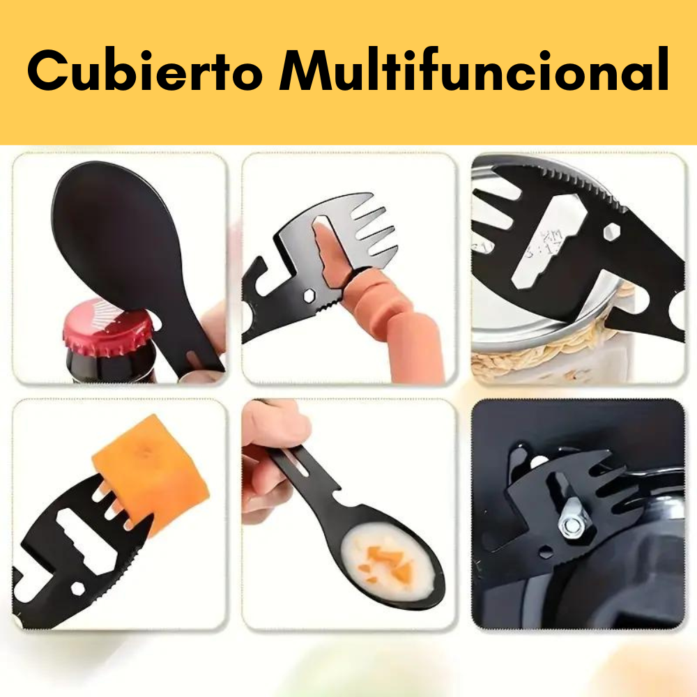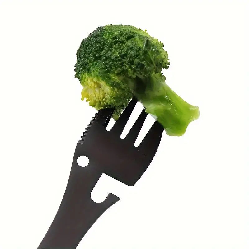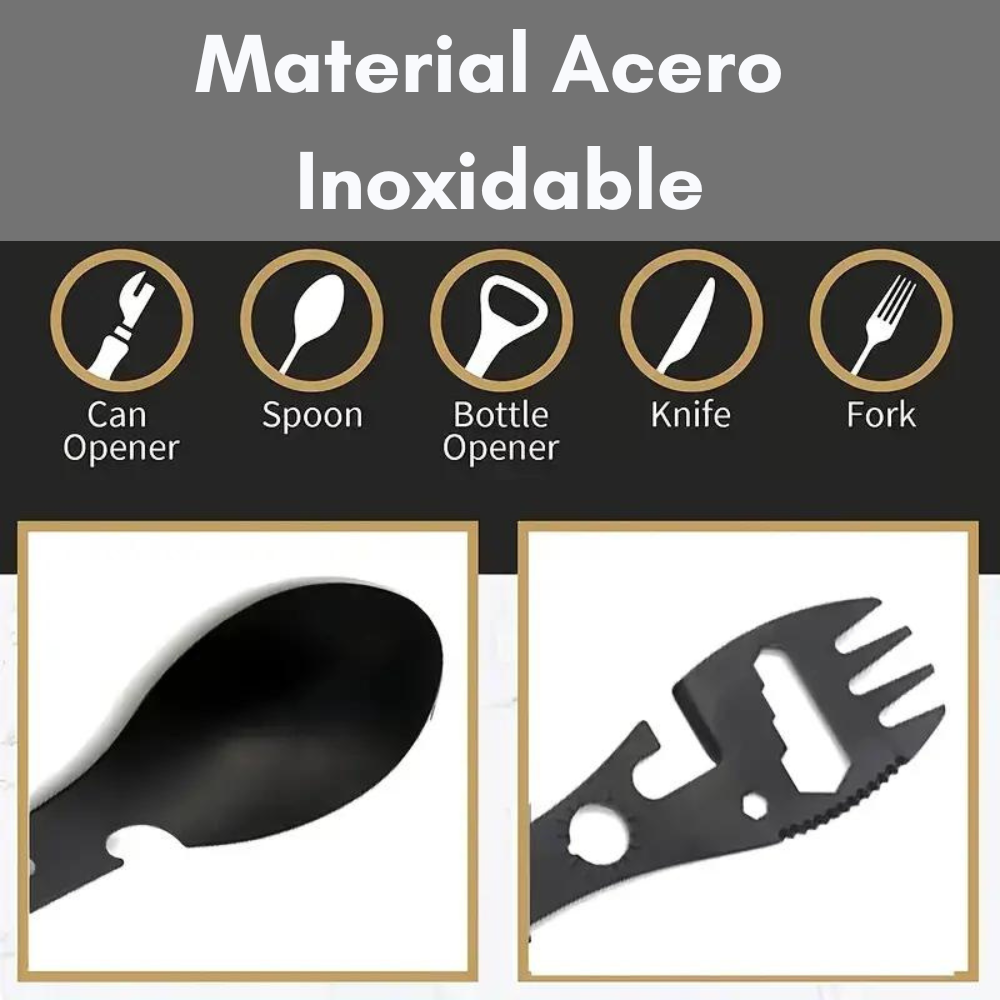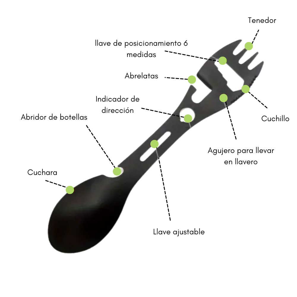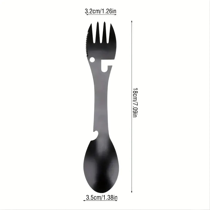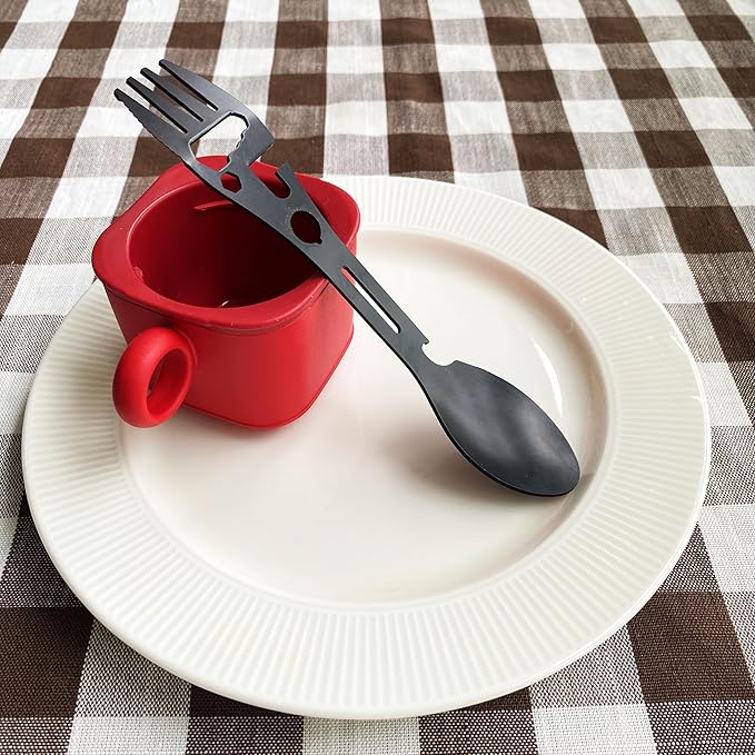 - Esta cuchara multifuncional para exteriores está hecha de acero inoxidable, que es duradero, resistente a la corrosión, no se oxida ni rompe fácilmente, ergonómica y fácil de sostener.