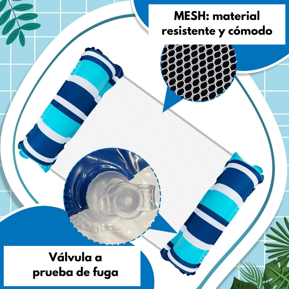 Llegaron nuestras hamacas inflables para descansar en la piscina. Material super resistente en malla mesh, práctico, cómodas y duraderas. Tienen almohada y reposa pies. Disfruta esos fines de semanas para recargar energías.