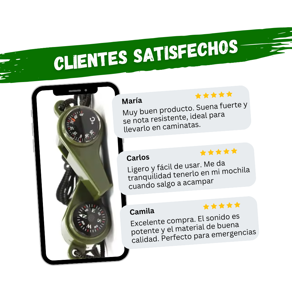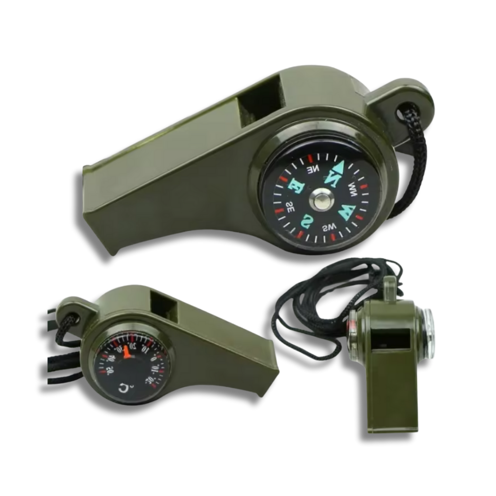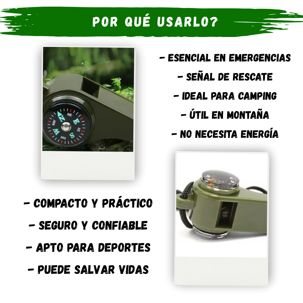 Este pito de supervivencia con brujula y termómetro incluido, es una herramienta esencial para cualquier aventurero, deportista o persona que desee estar preparada ante emergencias. Fabricado con material resistente resistente, combina ligereza, durabilidad y potencia sonora en un diseño compacto y ergonómico. Su sonido de alta frecuencia puede ser escuchado a grandes distancias, lo que lo convierte en un elemento ideal para actividades al aire libre como senderismo, camping, navegación o rescate.