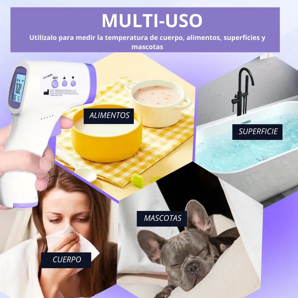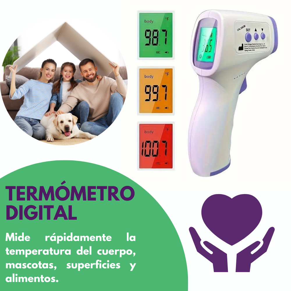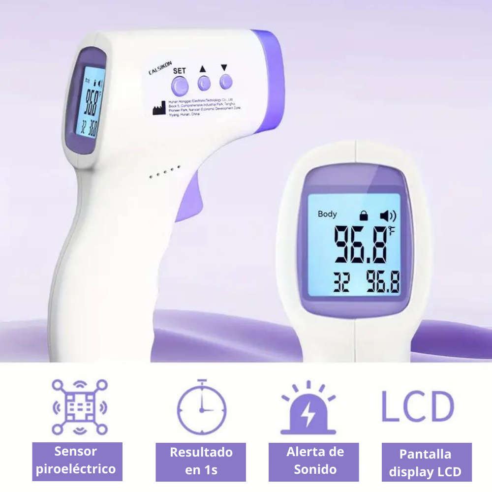 - Termómetro digital funciona con sensor piroeléctrico.