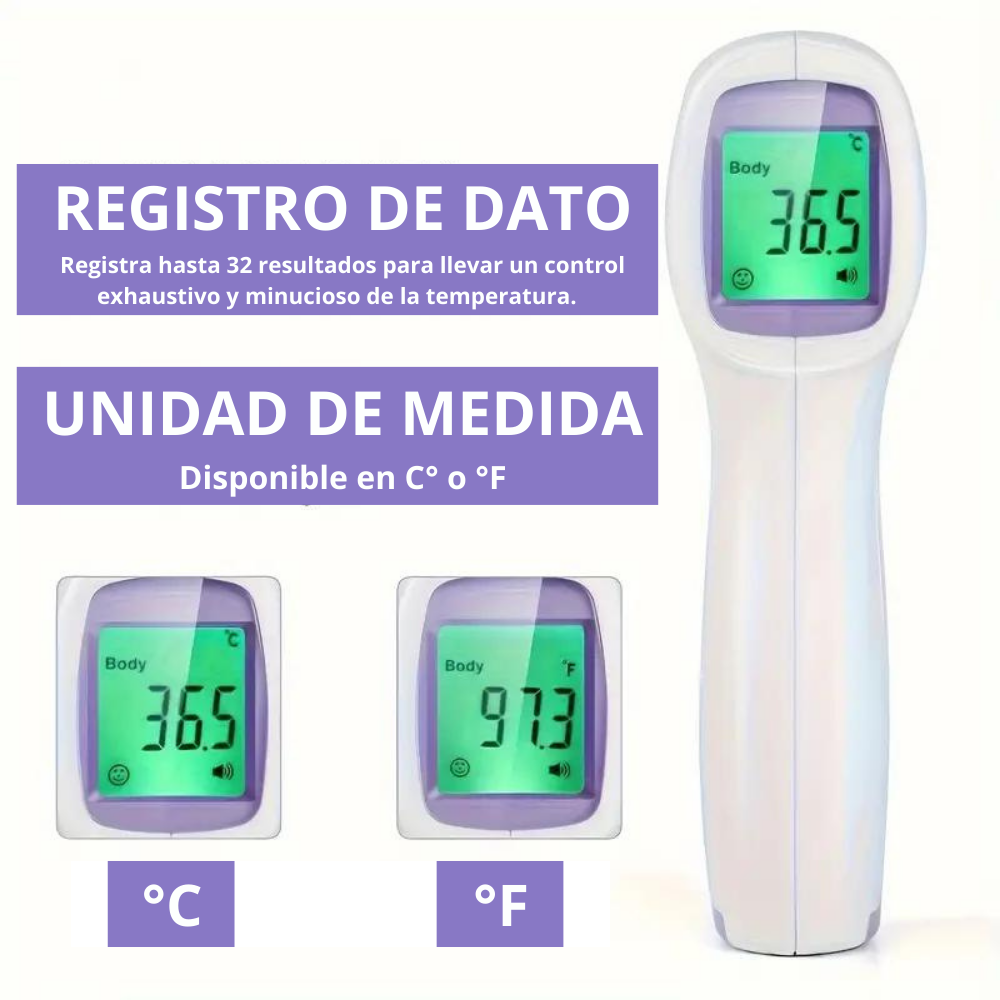 La salud primero. Con nuestros termómetros digitales podrás medir en 1s la temperatura corporal, superficies, mascotas, líquidos y alimentos. Además, podrás llevar un control minucioso y exhaustivo de las mediciones de temperatura ya que tiene un registro contador de hasta 32 veces, de esta forma podrás hacer un mejor seguimiento de la temperatura.